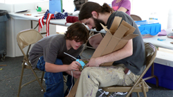 while building sculptures from recycled materials. While working
